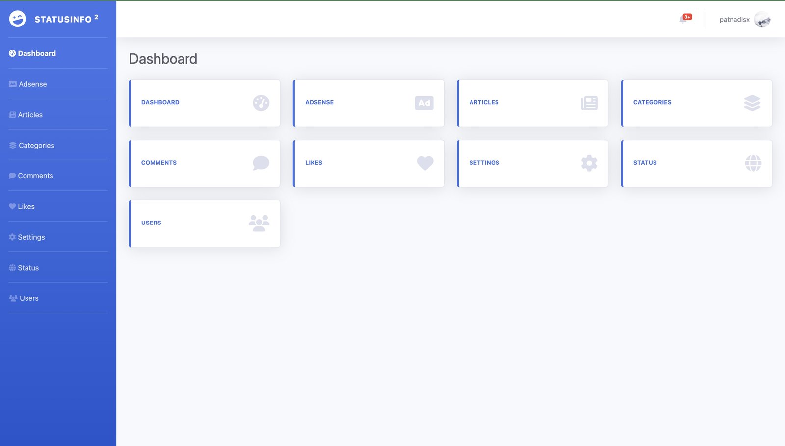 The Admin Panel for full control and managing the Gigoware blog site like WhatsApp status.